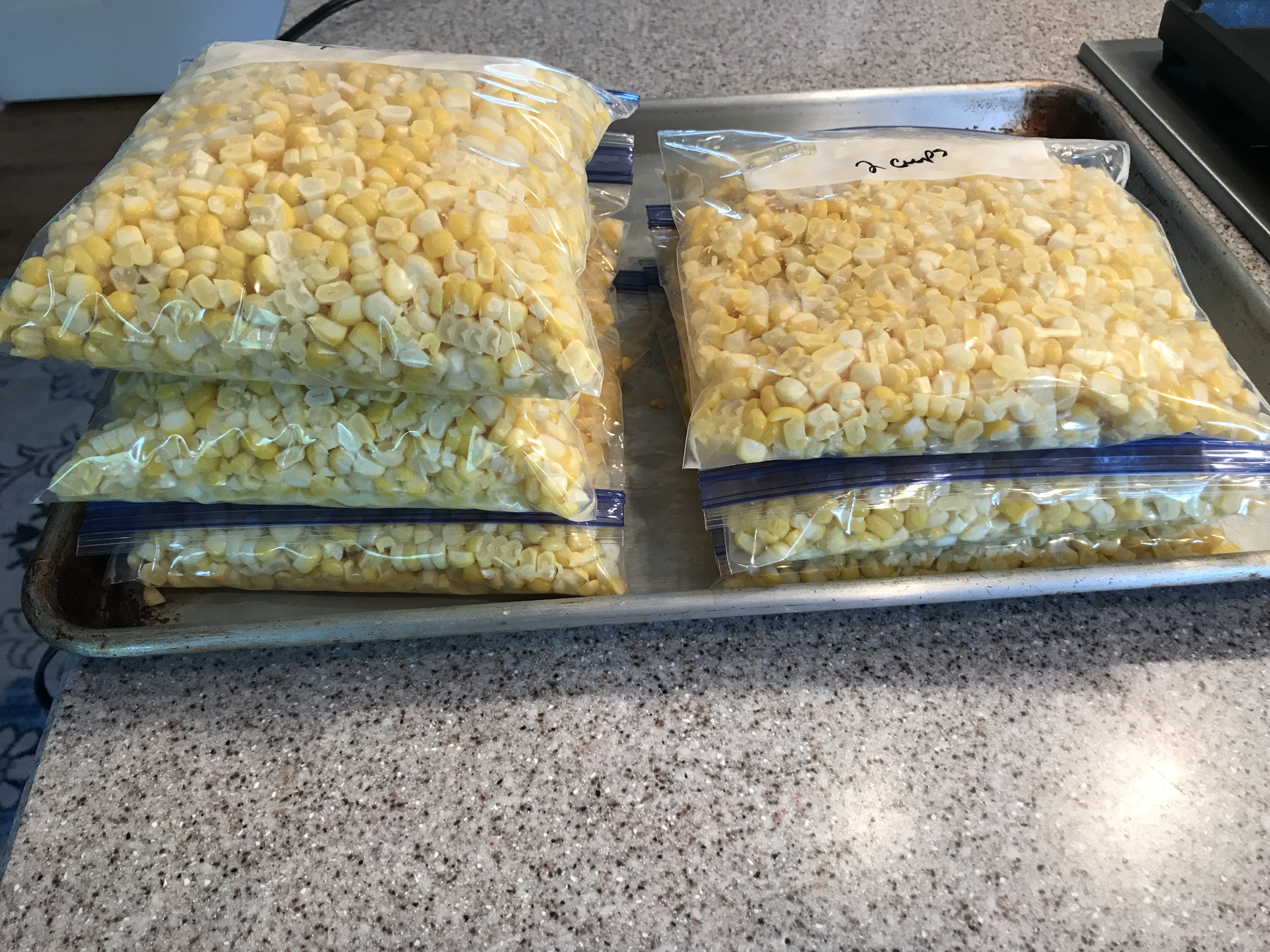 To use your corn from the freezer, just let it thaw in the bag in a sauce pan or in the fridge for a few hours. If you are in a hurry you can just run some warm water over the bag until you can break it up and get it out. Once it’s thawed enough to get it in the saucepan, add butter, a little water, and add salt and pepper to taste. Enjoy!
