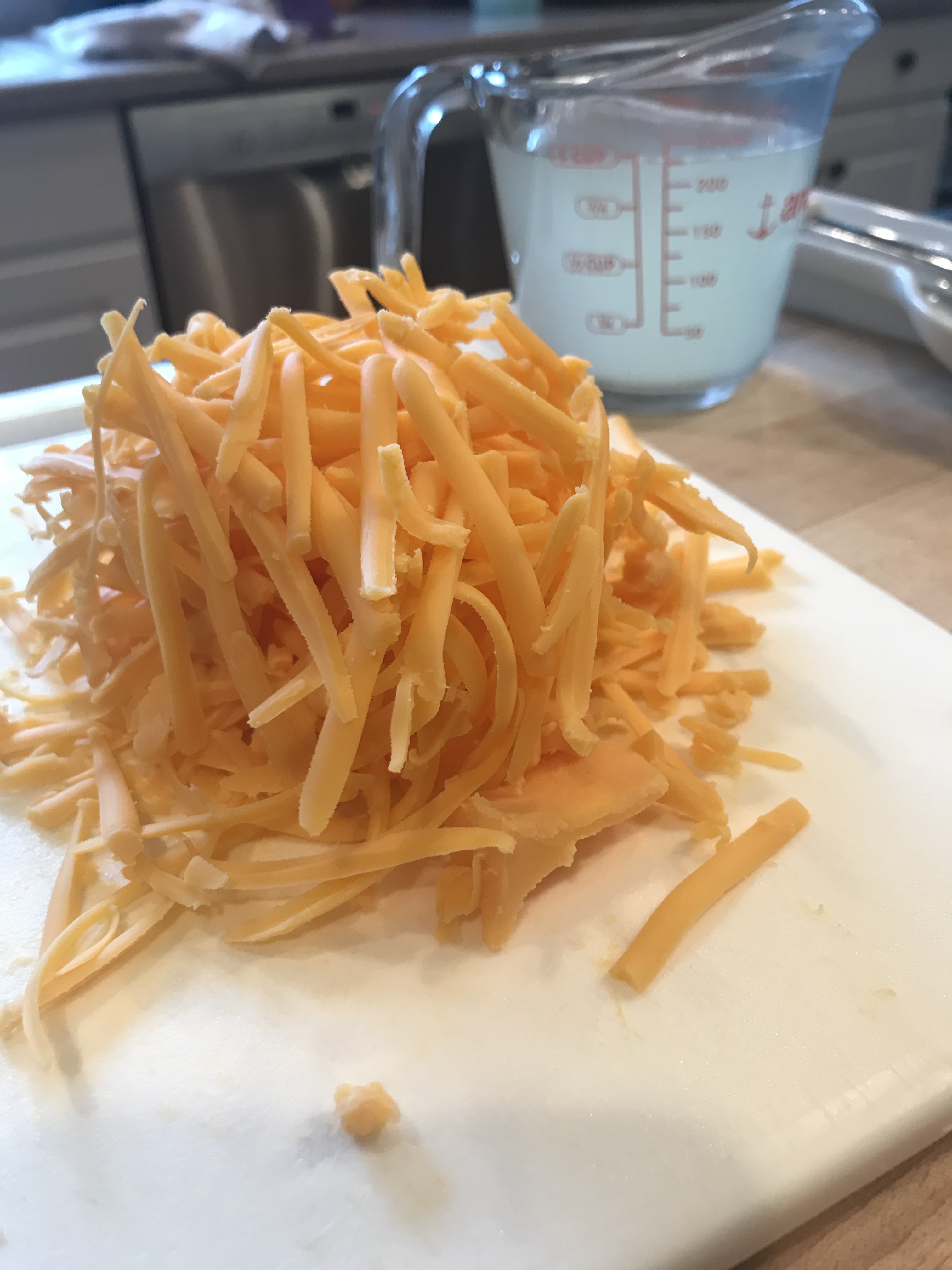 2 1/3 cups whole milk - 4 oz. cheddar cheese, shredded
