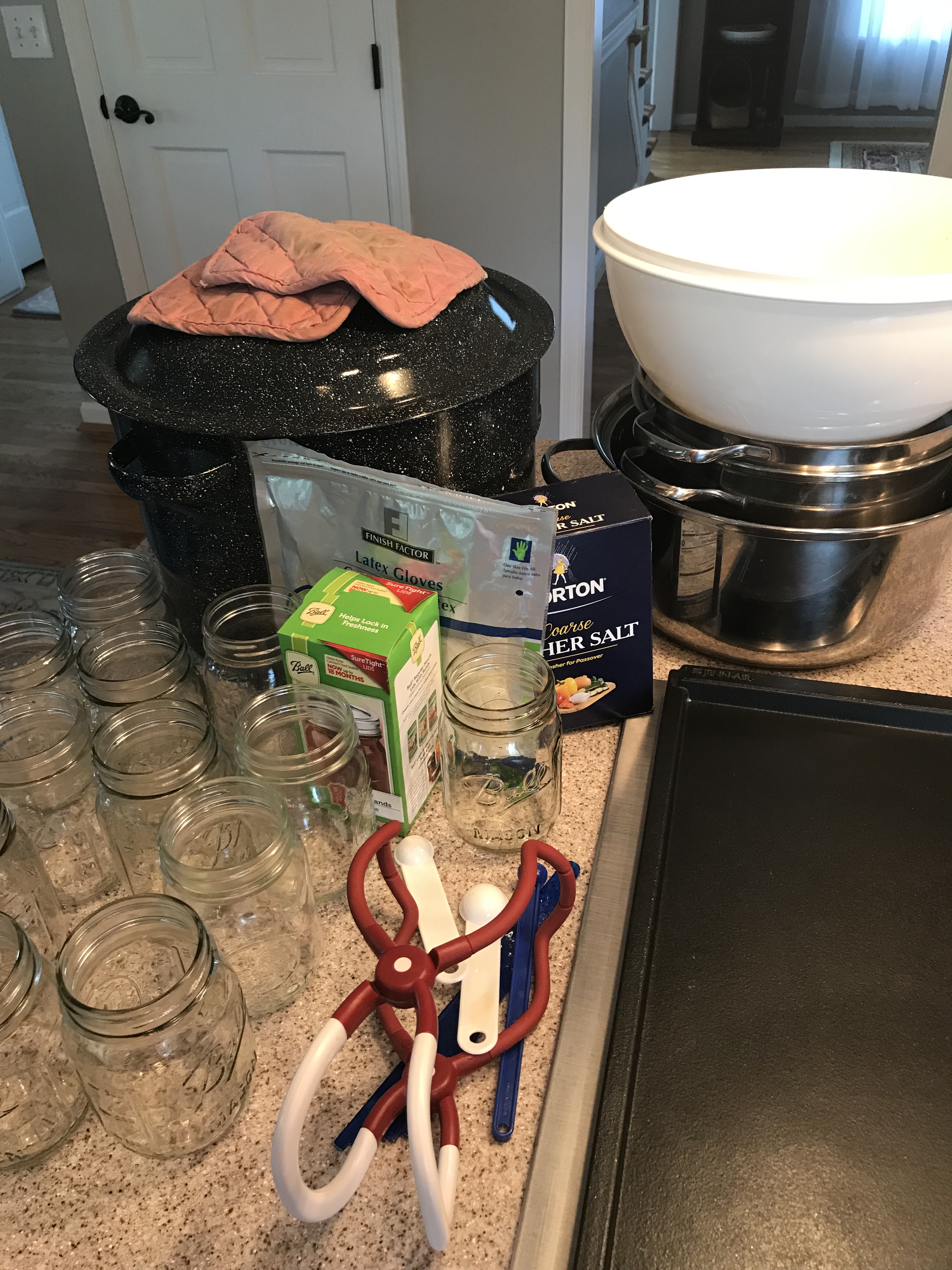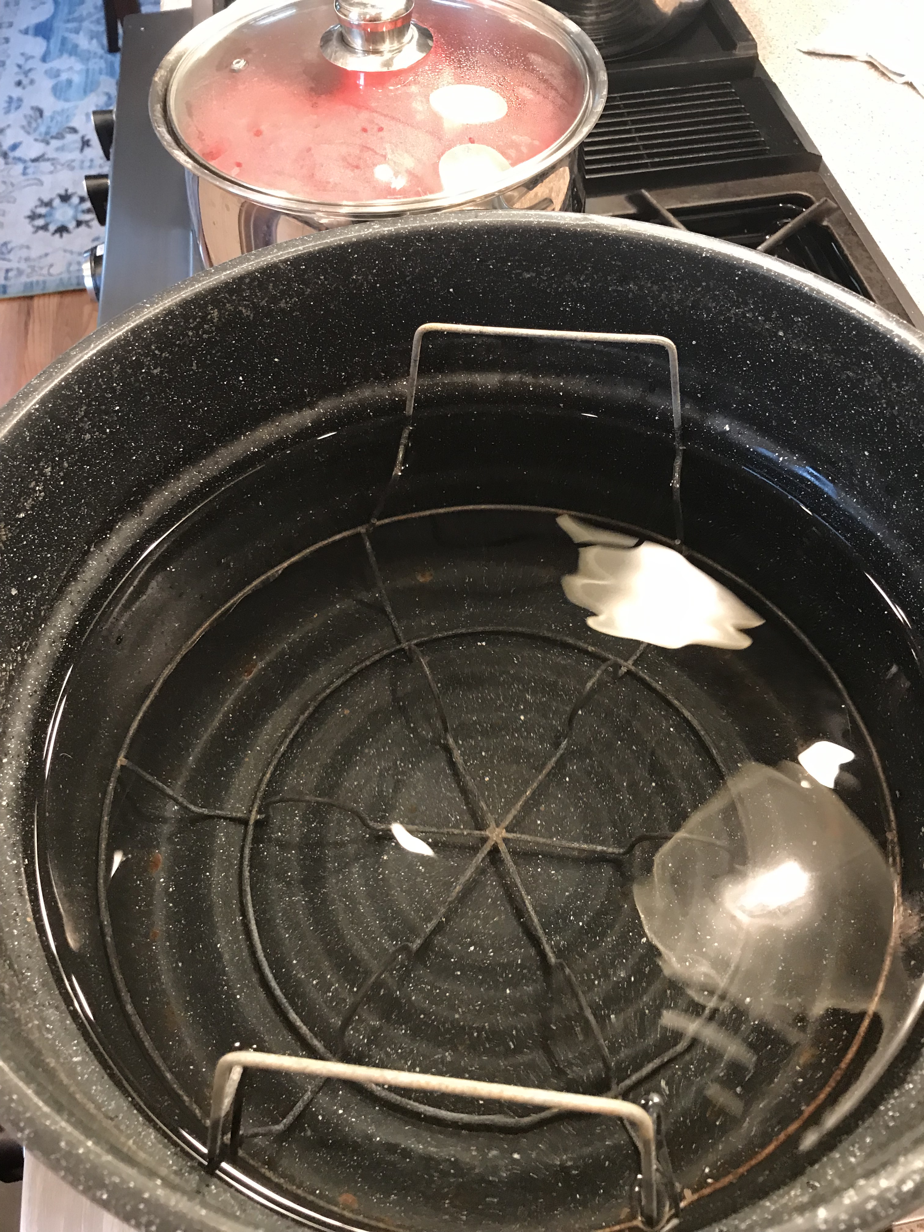 - Large hot bath canner – I got this one at a hardware store. They are pretty reasonable to buy ( I think this one was $20 but that was years ago). I would just suggest making sure it comes with a rack for your jars in the bottom.