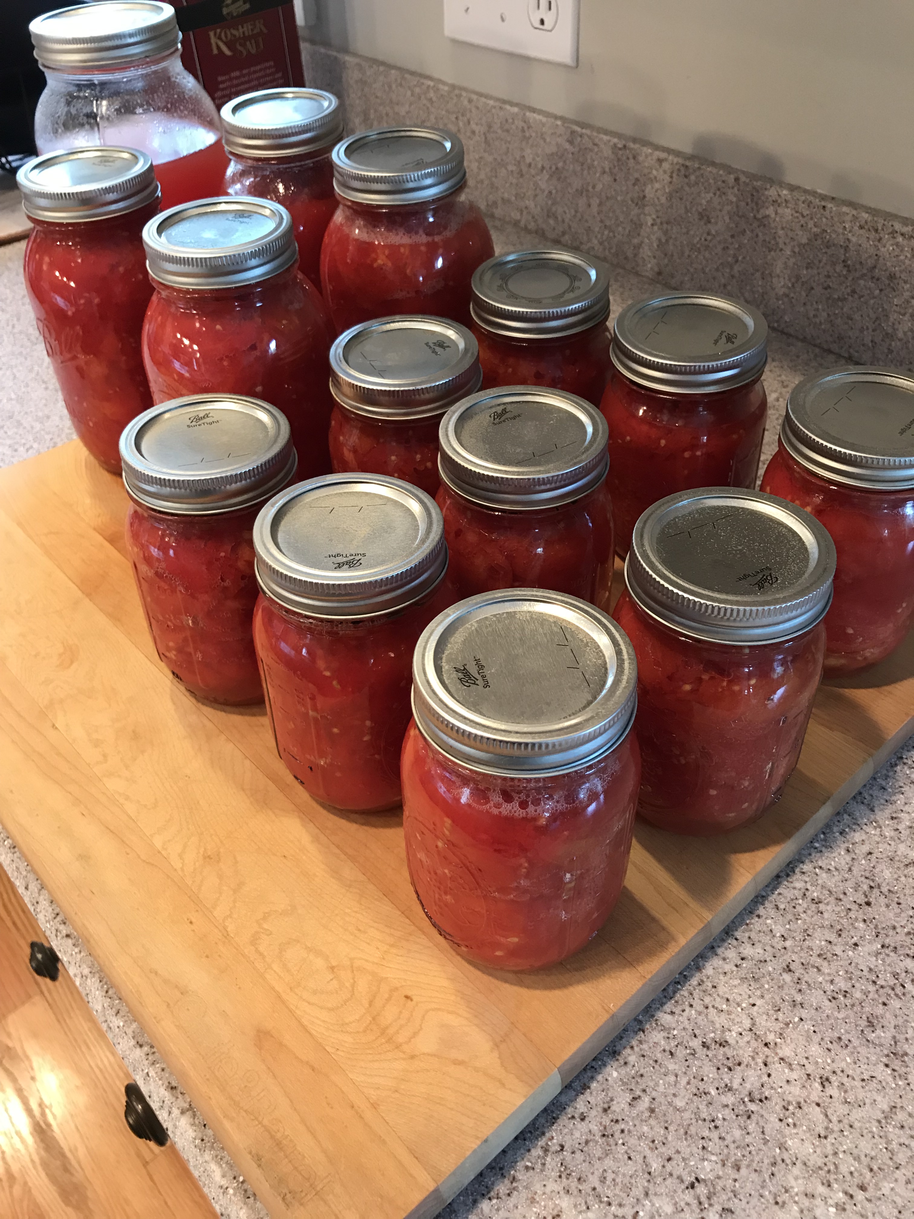 Every year in late summer I spend a couple of evenings or a weekend canning fresh tomatoes for me to use all winter. I have been spoiled with these end of summer wonders for as long as I can remember thanks to my mom and grandma. They would spend hours doing this same process, but they were just pretty jars to me then. As I got older I started to appreciate them for their culinary value. One late summer we were relocating so I had zero time to can any tomatoes and it was a hard winter to get through making gallons of chili and vegetable soup without them. It seems to be a lost art lately, so I hope you enjoy this post and try it out. You’ll be surprised how much better things taste when you are using these in the middle of January. 🙂