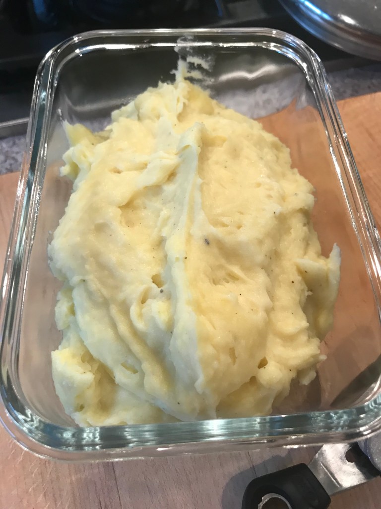 I made enough for about 4 servings, so I thought they would stay hot since I didn’t have to process that much. I also decided to heat up my butter and cream together to help keep things warm. That did the trick! What you get a silky soft mashed potatoes that are like what you would get out at a white tablecloth restaurant. Don’t get me wrong, I still love my traditional mashed potatoes, but these are good for a change of pace.