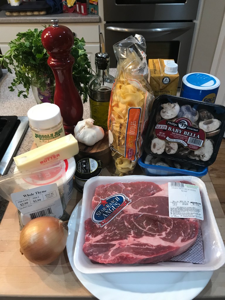 This is another old fashioned recipe that I have updated with some fresh veggies and eliminated the creamed canned soup and canned mushrooms. I’m not sure when I figured out that canned mushrooms were not something to be used in a slow cooker (or anyplace else that I can think of off hand), but once I went to fresh I can’t go back to the canned version. This is basically a pot roast with just onions and fresh mushrooms. I use different seasonings in this dish than in my basic pot roast recipe, and I put it on buttered egg noodles and add a scoop of sour cream to keep it traditional . I add the sour cream when I serve it to keep it from breaking in my sauce.
