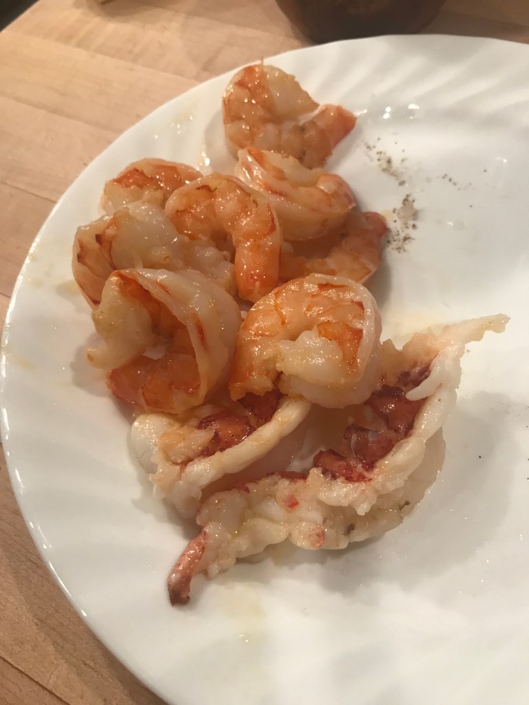 - (8) 16-20 count shrimp. I bought them shell on but get whatever is fresh where you shop