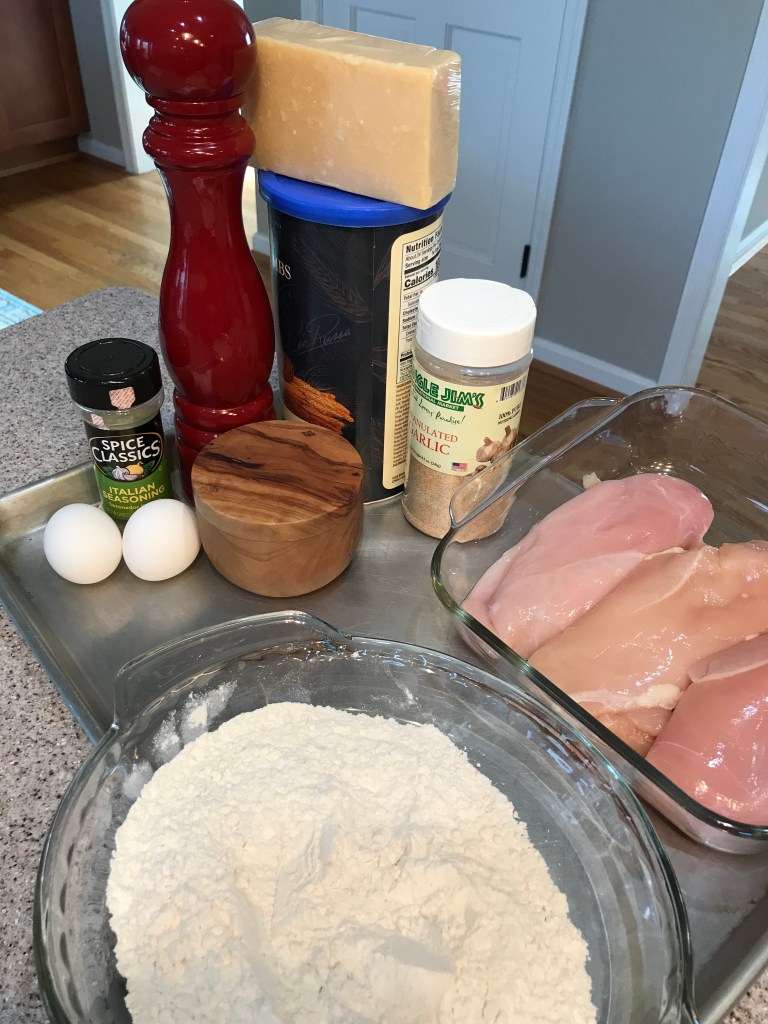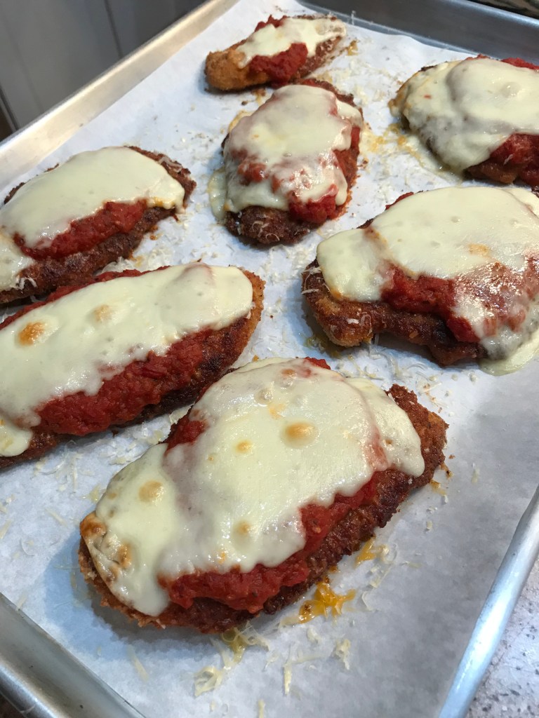 I LOVE a good piece of chicken parmesan, and it’s so easy to make at home. This is not the traditional stacked, baked, and (sometimes overly) sauced version I have had out at restaurants. While that’s not always terrible, I like my chicken parm to be more crispy and cheesy, so I came up with this technique. I use my homemade spaghetti sauce for this, posted on this blog September 2019, but a good jarred marinara sauce will work for this too if you are looking to get this on your plate in a hurry.