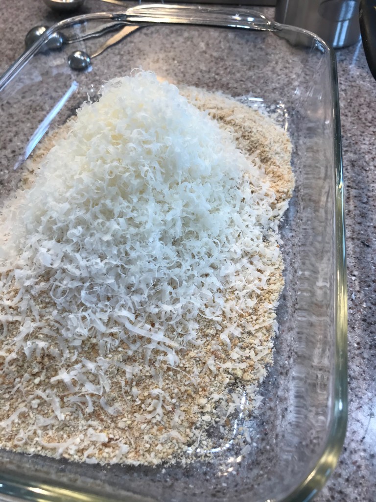 - 1 1/2 cups bread crumbs, panko or regular whatever you have. I even mix sometimes but I prefer Panko for crispiness