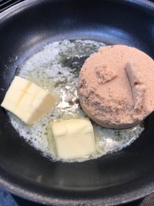 Heat the butter and brown sugar together in a small sauce pan over low heat, until the sugar is melted. Spoon a heaping tablespoon in the bottom of each pan, or the whole thing for a 13 x 9 pan.