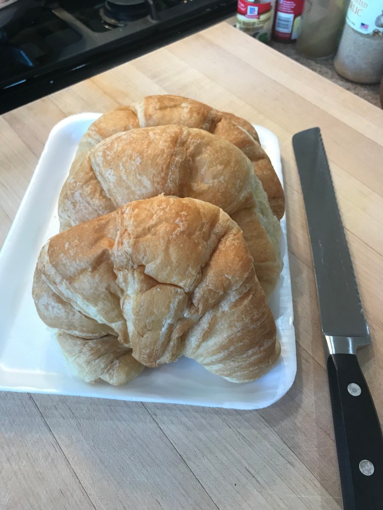 - 3 regular sized croissants, sliced in half