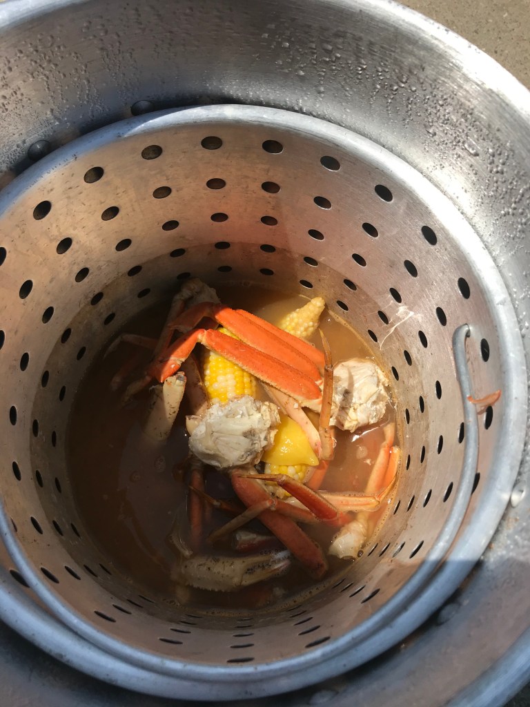 The reason I like to do these is because you can have your guest around and participate if making this meal. We do this outside on the driveway in a huge pot with a strainer inside. Just use caution and follow your manufacturer’s directions.