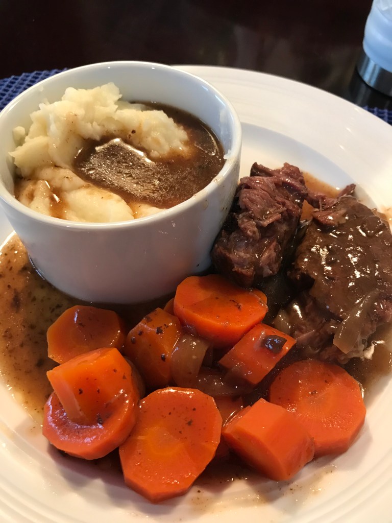 After 4 more hours, we were making progress, but I still felt like this took much longer than my traditional crock pot. I thickened up my gravy and rolled with it. I did cut up my roast to help push it along and after a total of about 8 1/2 hours I was where I usually am with my regular method for slow cooker dishes. I’ll give the pressure cooker function a try next, maybe with some country pork ribs. 🙂 Enjoy!