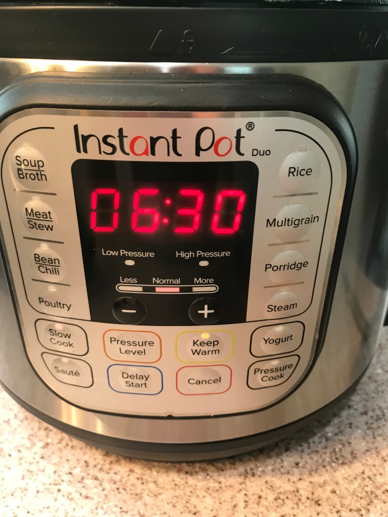 Now I needed to decide how long to cook this thing. I decided to start with the “normal” setting which is supposed to translate to the medium setting on a crock pot. I set the time for 7 1/2 hours, closed the lid and made sure it was set for “venting” on the pressure valve.