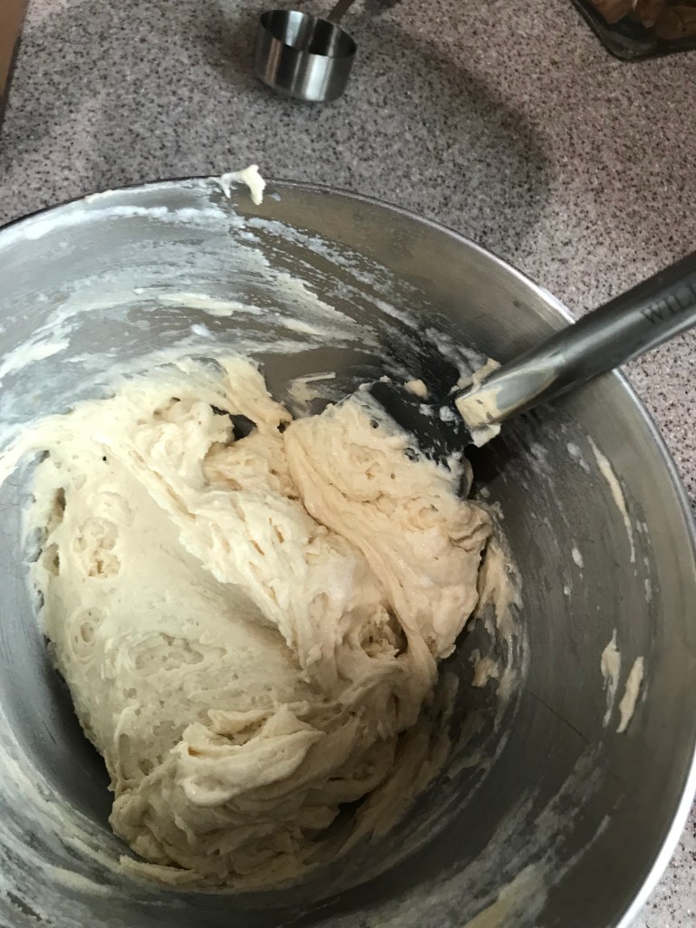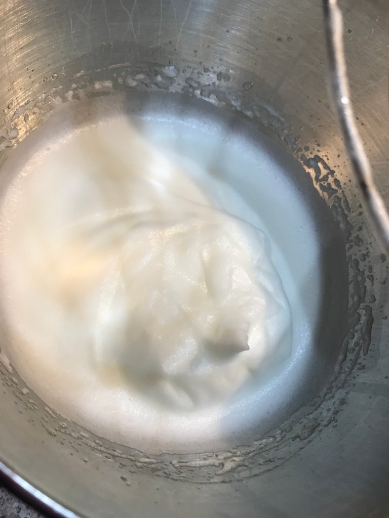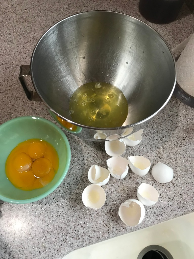 Sift together the flour, baking powder and salt in a medium sized mixing bowl. Set aside. Separate the eggs. (note: I mixed some milk with the yolks and made breakfast for my dog. She’s spoiled yes, but I didn’t want to waste them. 😊 )