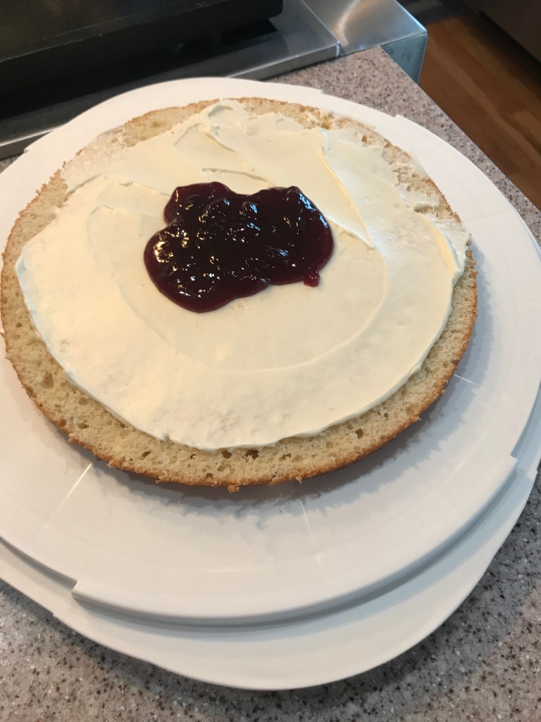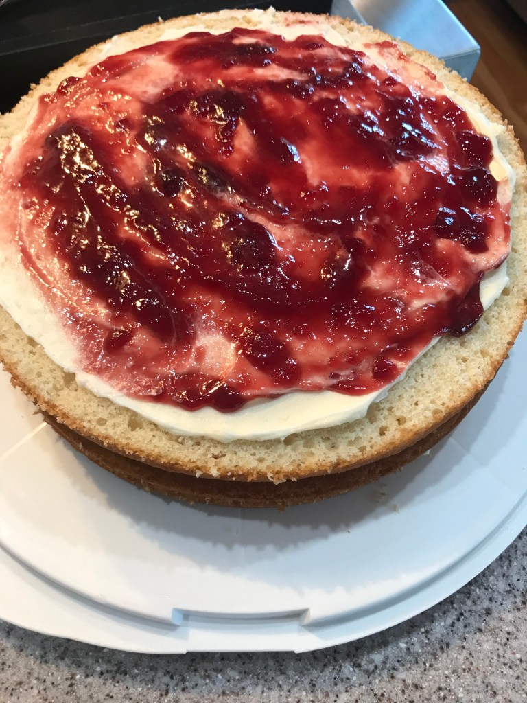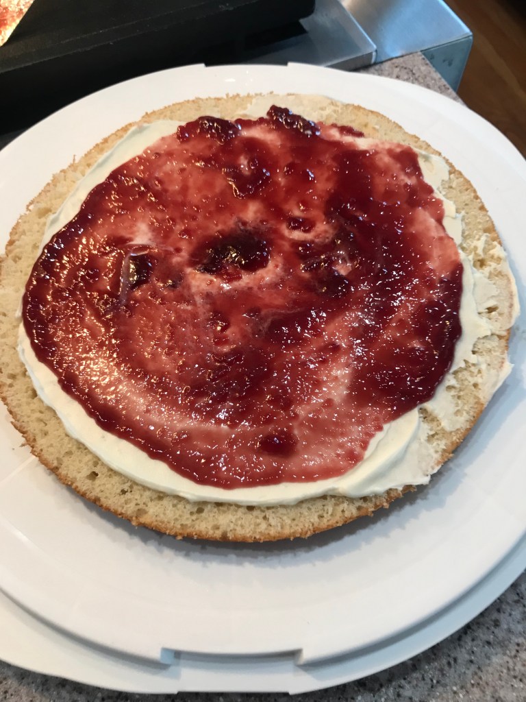 Melt the preserves over low heat until just melted, then remove from the heat. Now time to build the cake!