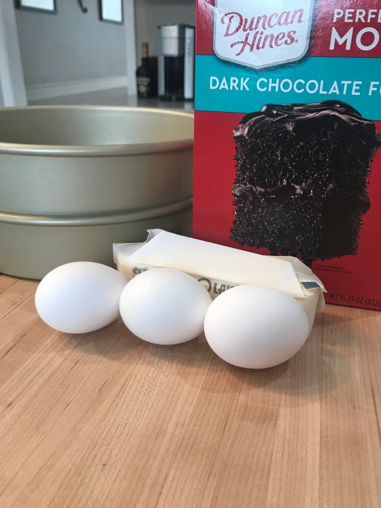 Preheat oven to 350 degrees. Butter and flour (2) 9″ round cake pans and set side. Mix together the eggs, water and butter in a small bowl or mixing cup. Put the cake mix in a mixing bowl and blend in the egg/butter mixture 1-2 minutes on medium until blended, then on high for one minute more, scraping the sides to make sure it’s well incorporated. Spread batter evenly in to the pans and bake on the milddle rack of the oven for 25-30 mintues until cake tester comes out clean. Cool on a rack in the pans for 10 minutes, then invert on a rack and cool complely. Note: You can make this in 8″ pans, just adjust your cooking time.